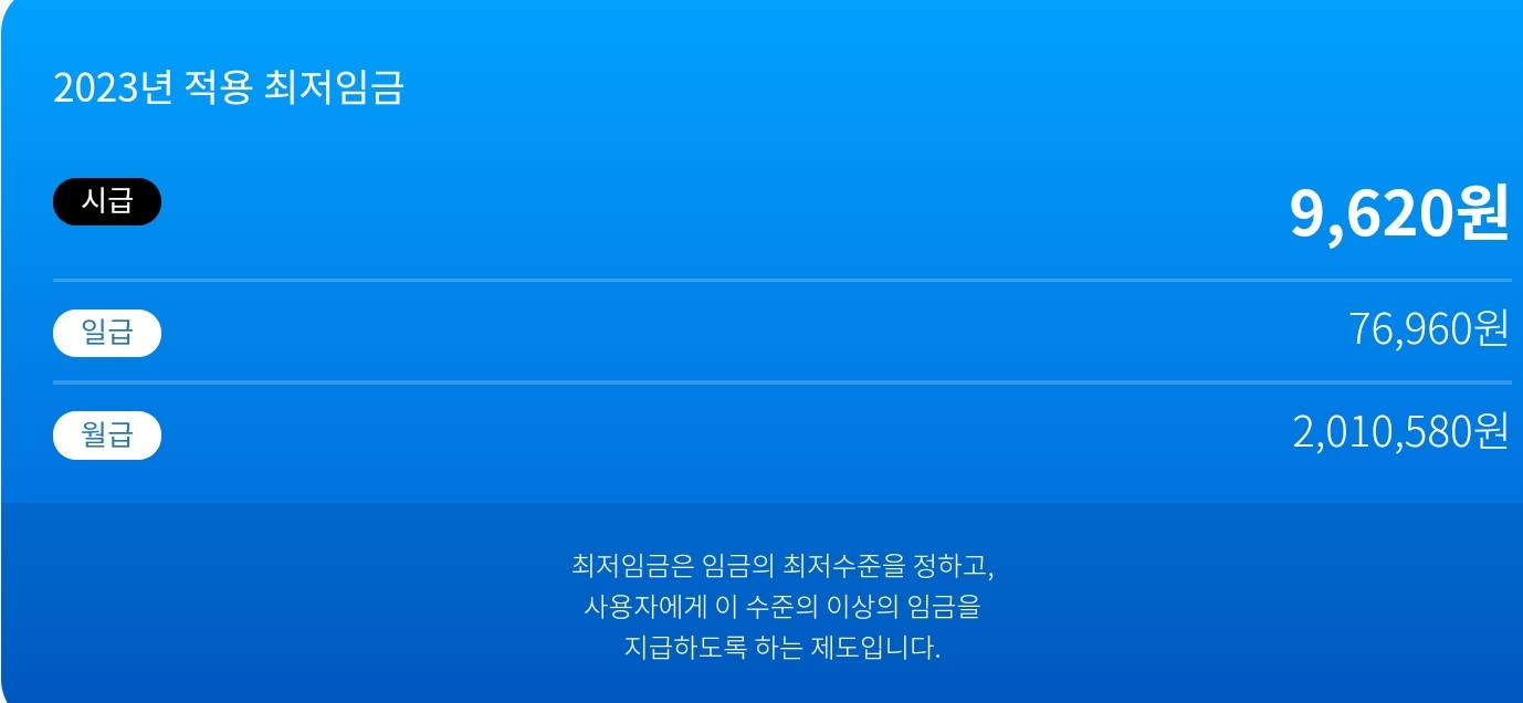 -2023년 1주일 40시간 근무 기준 (유급, 주휴수당 도합) :2,010,580원