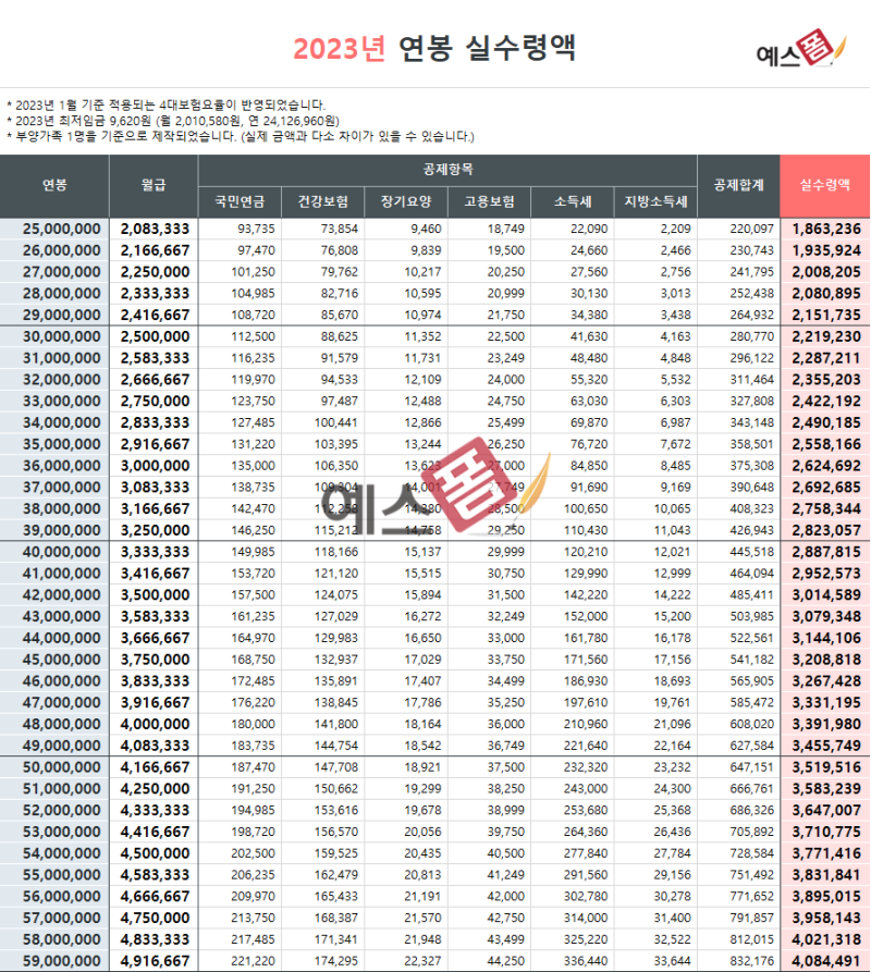 2022년도와 동일하게 국민연금 요율은 4.5%로 동결되었습니다. 이 외에 조금씩 사대보험요율이 조정된 바에 따라서 2022년 대비 2023년도의 실수령액은 좀 더 줄 것으로 예상됩니다. 위 도표는 네이버 지식백과의 '예스폼 서식사전'에 기입되어 있는 도표를 차용했습니다.